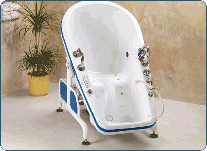 This tub is the tub of choice for those suffering with M.S. and related conditions. The Tub tilts forward to allow easy access.The ideal shower and bath tub for limited mobile patients.